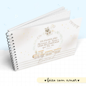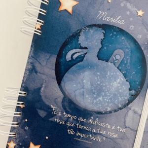 Produto artesanal com capa personalizada com o nome da criança.